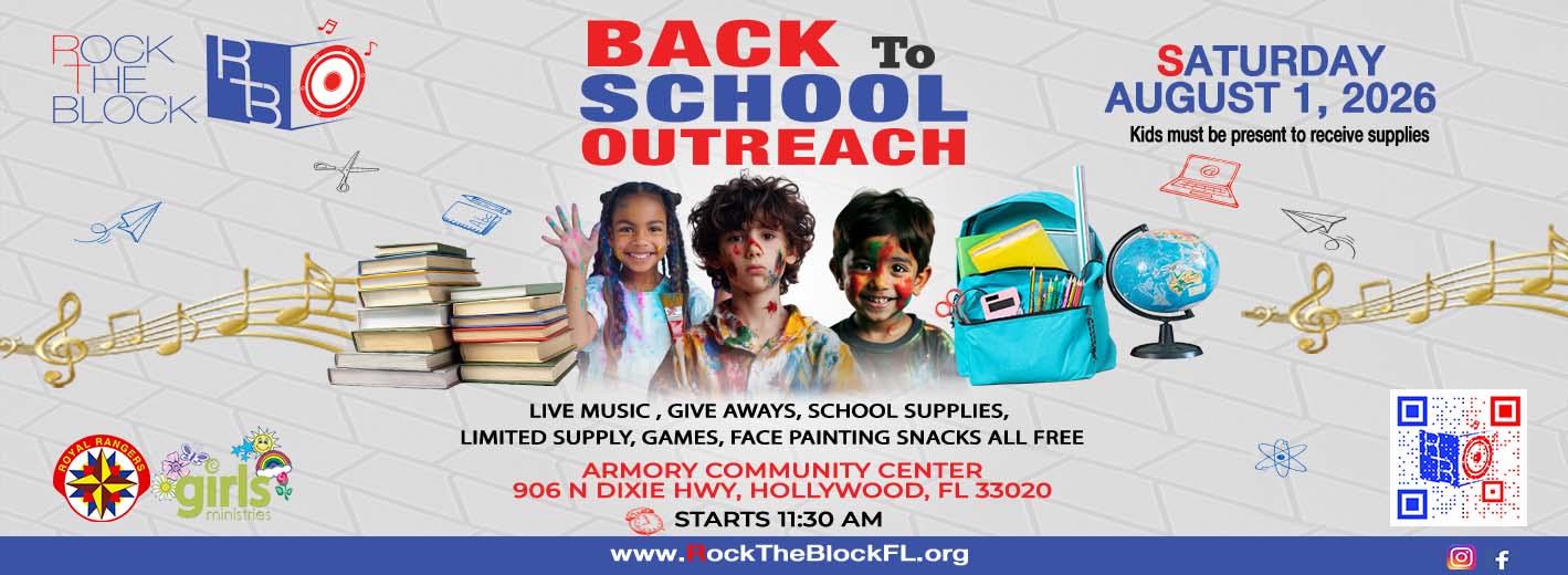 Walk For Christ Ministries has been taking the Gospel to the inner cities with Rock The Block Florida. Our outreaches consist of Live Music, Free food, Huge Kid Zone and connecting with other organizations that help meet the community needs like Free haircuts, donate blood, free groceries, back to school supplies and some basic health care since 2004.